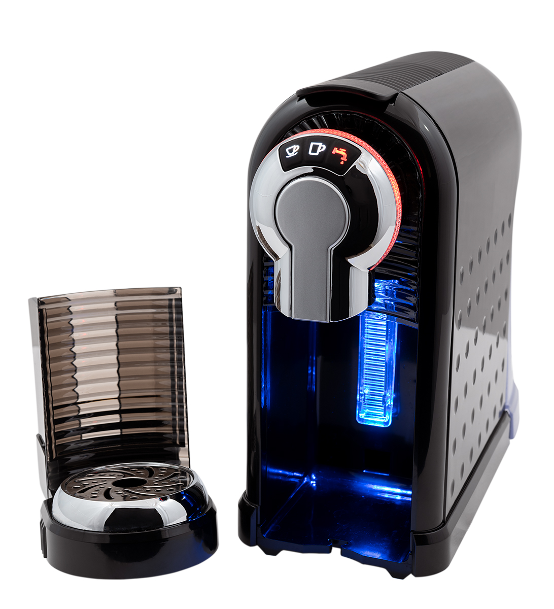 Die neue Teemaschine von SAWOA, der KKT 01, ist in edlem anthrazit und chrom gehalten und so ein echter hingucker für Ihre Küche. Das formschöne Gehäuse verbirgt hochwertige Technik. Die italienische Pumpe arbeitet mit einem Druck von 19 bar sorgt dafür, dass in Verbindung mit den verwendeten Kaffeekapseln das gewünschte Geschmackserlebnis eintritt. Egal, ob Tee Espresso, Ristretto, Lungo, Cappuccino etc. - in kurzer Zeit ist das Getränk zubereitet. Somit ist der KKT 01 eine Kaffeeautomat und gleichzeitig Teevollautomat. Der Wassertank mit einem Volumen von 800 ml kann zum Befüllen entnommen werden. Per Knopfdruck (3 Wahlschalter) beginnt die 1. 260 W -Thermoblock - Heizung das Wasser aufzuheizen. Nun noch die Kapsel mit der bevorzugten Geschmacksrichtung einlegen und den Brühvorgang starten. Der Auslauf kann der Größe der Tassen angepaßt werden. Ist der Brühvorgang beendet, den Hebel öffnen und die gebrauchte Kapsel fällt automatisch in den Auffangbehälter. Dieser kann bis zu 10 leeren Kapseln aufnehmen. Falls der Wasserstand zu niedrig ist, wird dies durch ein optisches Signal angezeigt.