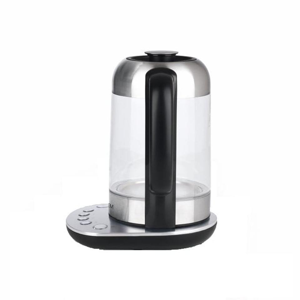 Dieser Digitale Wasserkocher besticht nicht nur mit seiner Optik, blaue LED Beleuchtung in edlem Edelstahldesign, sondern er bietet auch eine Menge Bedienkomfort: Mit der vierstufigen Temperaturauswahl bereiten sie das Wasser auf Knopfdruck für nahezu jede Teesorte optimal temperiert zu. 70 °/80°/90°/100°C Dank der Warmhaltefunktion, die sich nach 60 min automatisch abschaltet, darf die gemütliche Teerunde auch gern mal etwas länger dauern. Die widerstandsfähige Glaskanne it ideal für die Zubereitung von den unterschiedlichsten Teesorten.